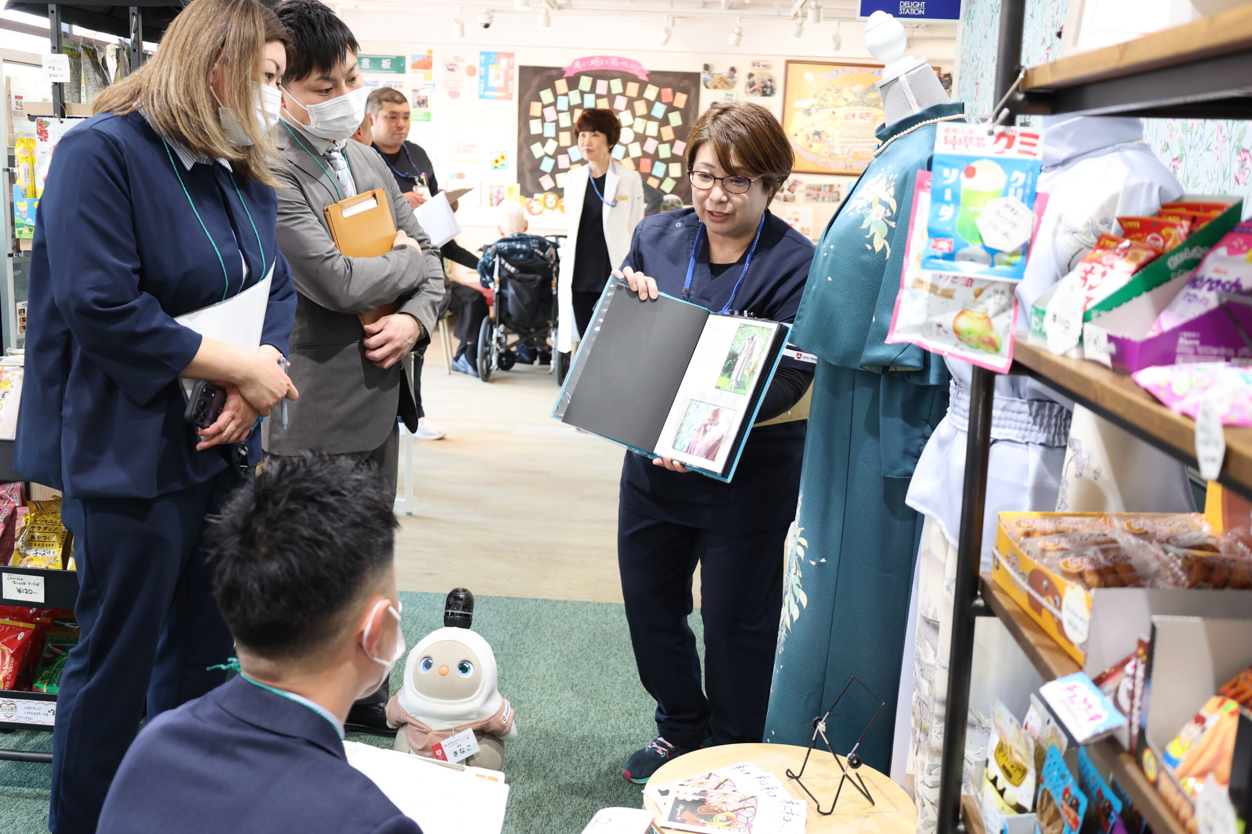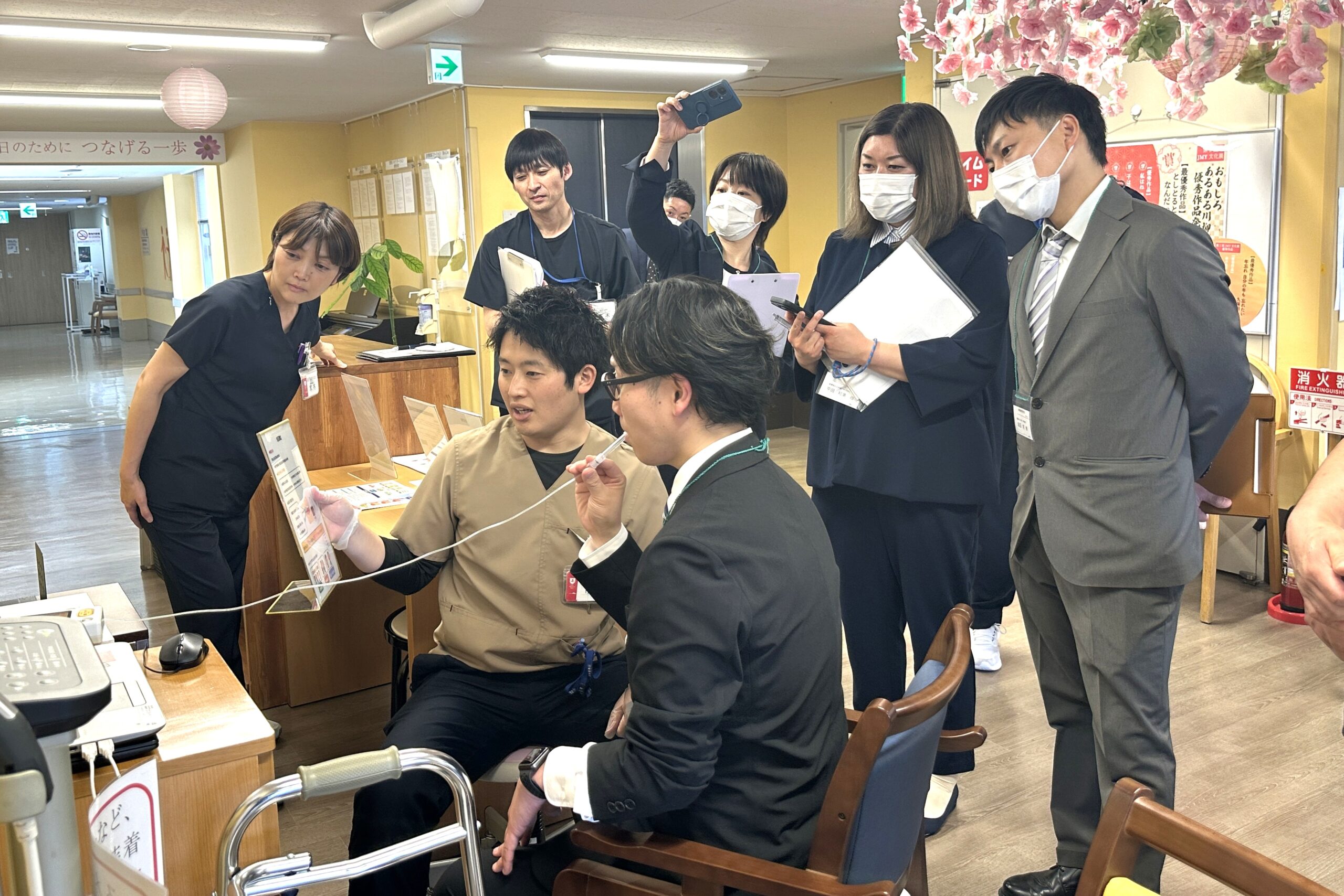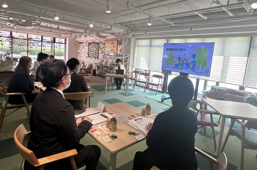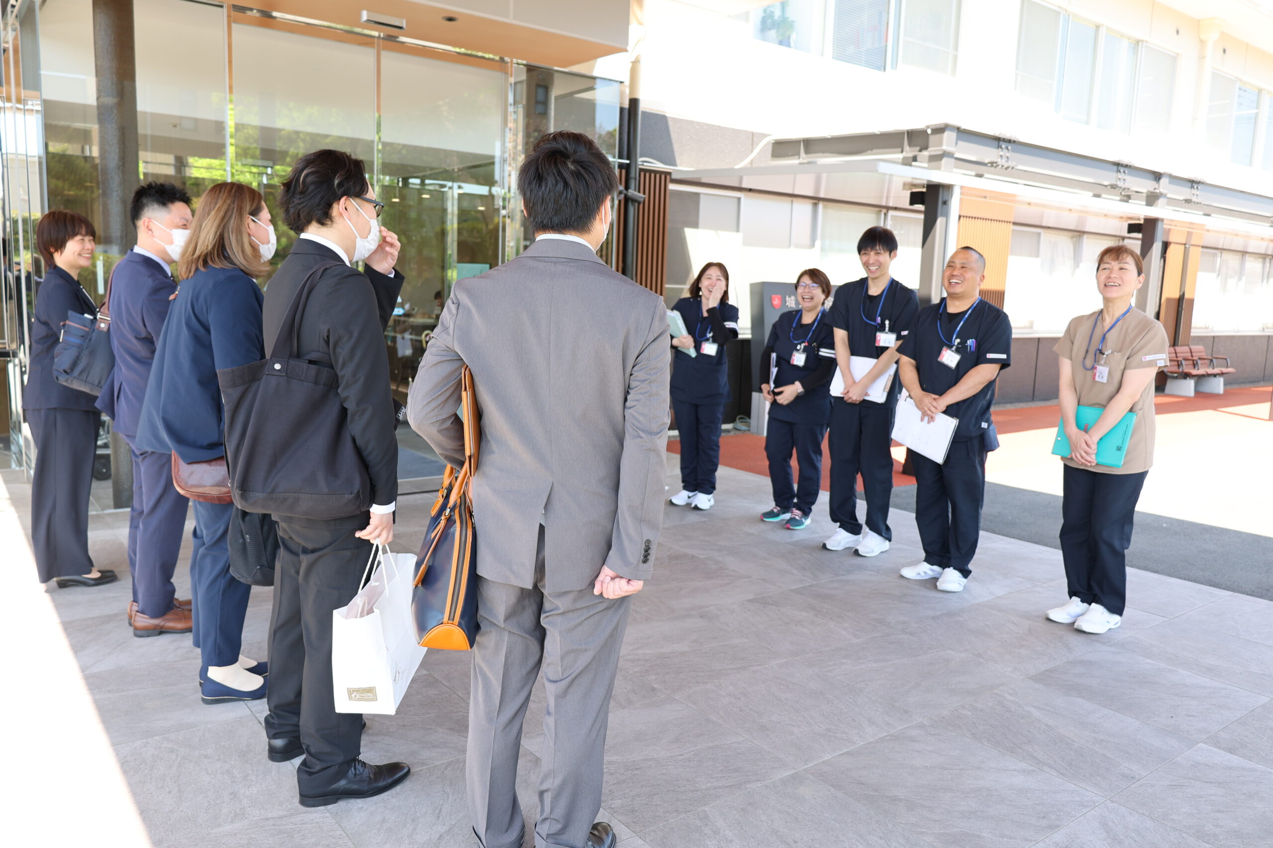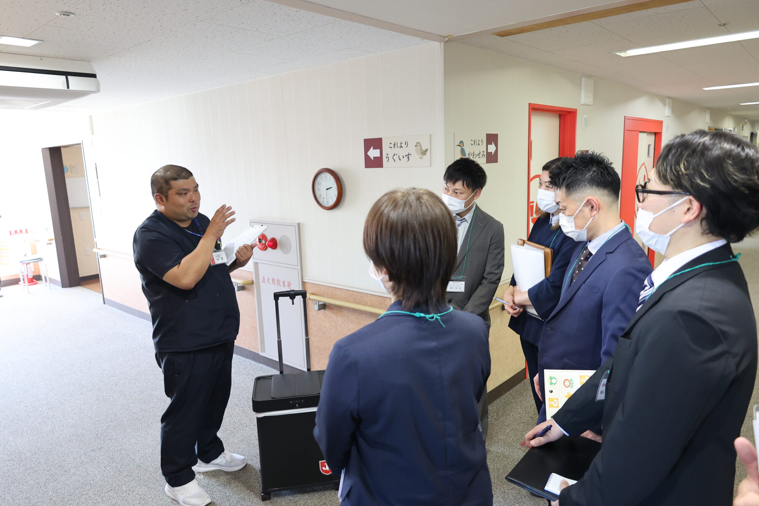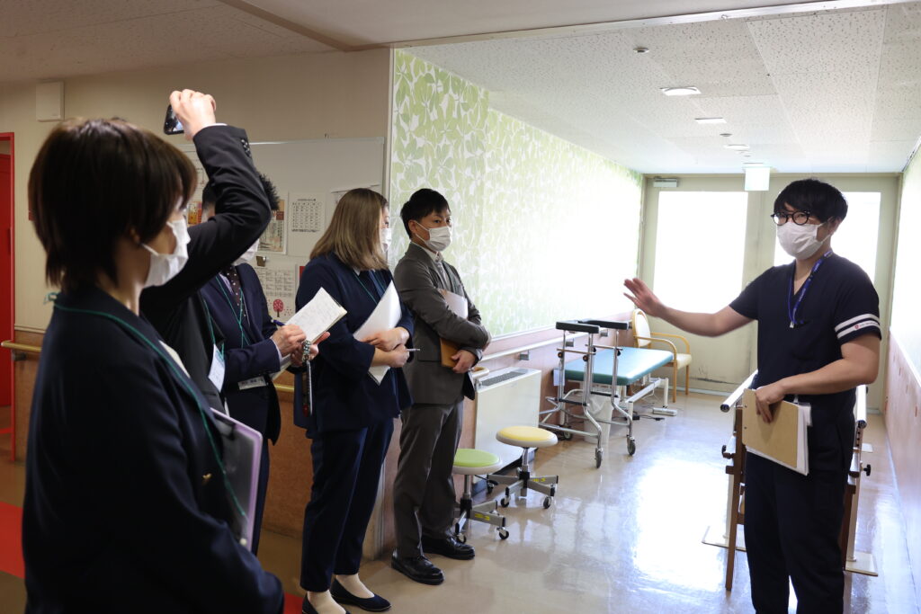 まずは当院院長より、法人理念やこれまでの歩み、地域における役割など、当院の取り組みをお伝えしました。その後は院内の見学ツアーへ。介護医療院、医療療養病棟、デイケア、でらいとステーションなど各施設をご案内し、現場での取り組みをご覧いただきました。