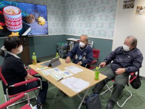 市や包括センターも参加する琢美未来プロジェクトでも地域の今後について話し合っていますが、『具体的な計画を立てて、フレイル予防をいち早く地域で始めていきたい!!』という想いが溢れ出ているこの方々が、こちたく部屋に来て下さいました。