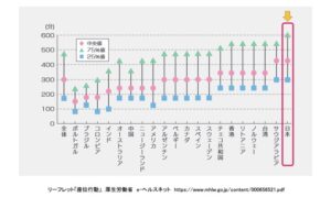 厚生労働省によると、日本は世界の中でも座る時間がかなり長いことがわかっています。