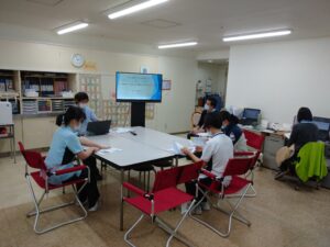ほうかつ職員が受け持った事例を訪問リハビリ、オレンジカフェ、外来の職員と一緒に振り返り、課題を検討したり今後の関わりについて話し合ったりしました。