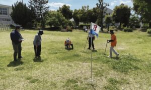 今回は琢美グラウンドゴルフ愛好会の方が協力してくださり、近所の公園でグラウンドゴルフをしました。