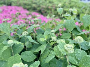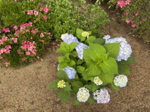 アジサイ通りのアジサイは、3年前に琢美地区の方が近隣から株分けしてもらって植えたもので、今年で4年目を迎えます。