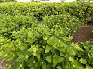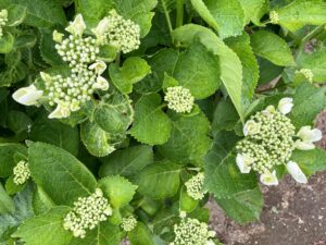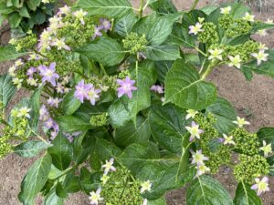 5月のアジサイは、花がついて、蕾はふっくら、中には色がついている株も出てきました。