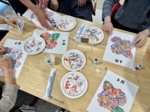 初回の今日は『みんなで心と体を使って、フレイル予防!!』をテーマに、運動したり頭を使ったり、写真撮影や貼り絵などして過ごしていただきました。
