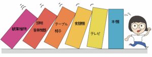 『家具は倒れるもの』と考えて、家具の転倒防止対策を立てておきましょう。