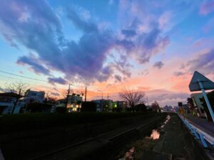 この間、夕方に自転車をこいでいたら空がとてもきれいだったので、良く見える場所まですごい勢いで走りました!