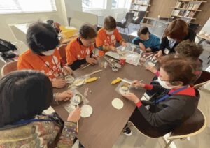 すごろく、福笑い、コマにけん玉、でんでん太鼓づくりなど。