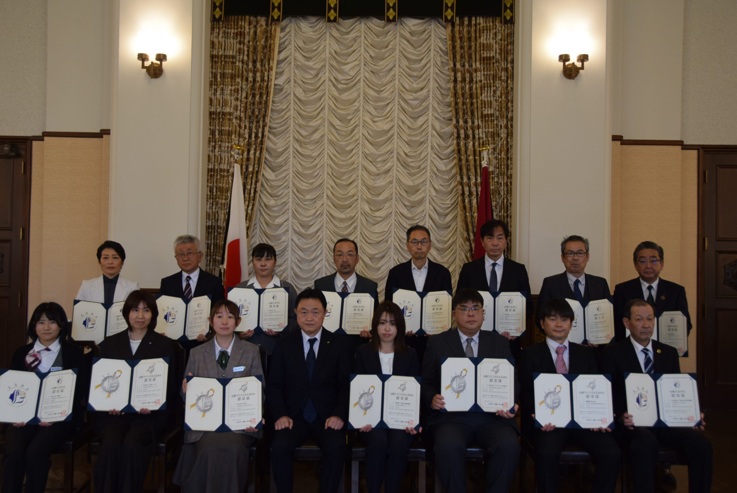 今回は山梨クリスタルえるみん5社、山梨えるみん10社が認定証の交付を受けました。