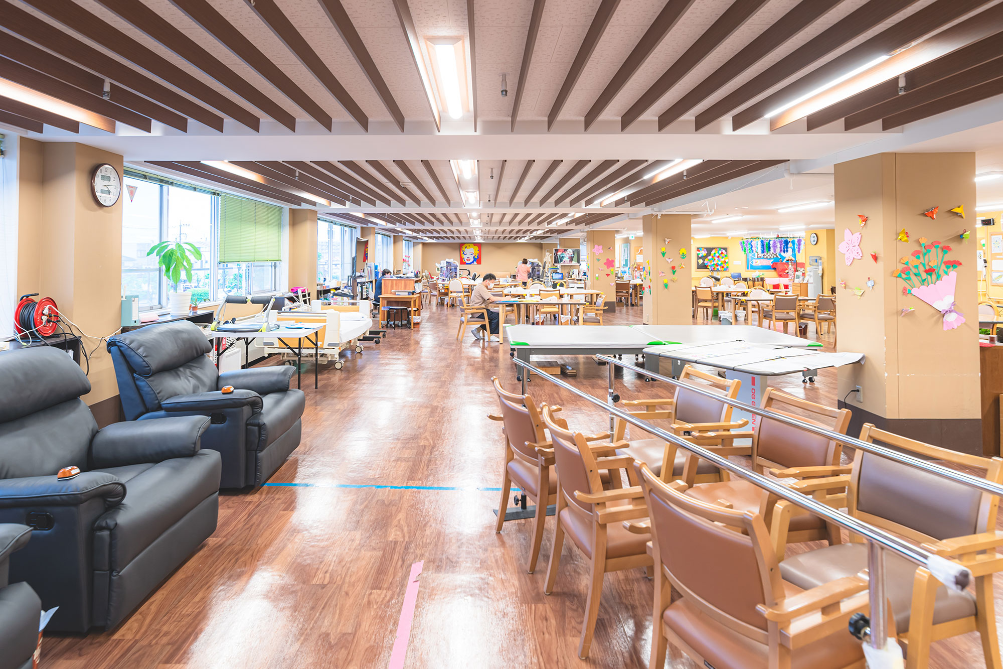 利用者様が可能な限り自宅で自立した生活を送ることができるよう、身体機能や生活機能向上のための訓練を通所リハビリテーション施設に通いながら受けることができる日帰りの介護保険サービスです。